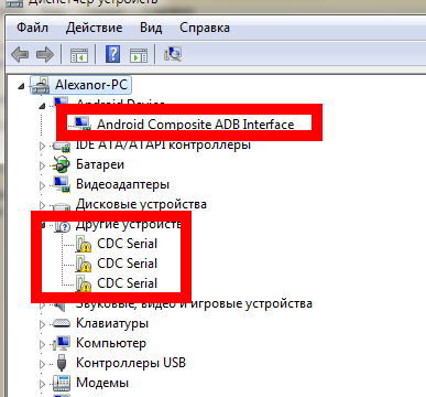 Отладка по УСБ на устройстве включена.