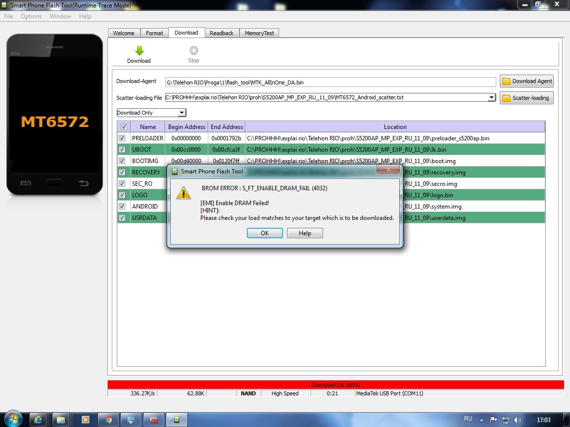 Привет. Помогите, перелопатил форум пробовал столько всякого что уже запутался что делал. Принесли explay rio play , сначала зависал на 2 заставке, первая была explay powered android потом цветная explay rio play. Первый раз прошил на обычную все заработало, выключил телефон и отдал, потом говорят мол не включается и не заряжается, забрал и правда теперь зависает на первой заставке. при подключении зарядки, на дисплее появляется анимация батареи на она не пополняется и светодиод зарядки красным не горит. Прошил другой прошивкой, ничего, потом прошил опять той же прошивкой тоже ничего. Уже пробовал и download only, firmware update, и format+download. ничего не помогает. Версия флештула 5.14. Прошивал и без батареи, все шьется а толку нет. Дайте плиз точку старта с чего начать чтоб его реанимировать? уже запутался, вроде где то натыкался на инстукцию восстановление полного кирпича, но в шапке нет и найти не могу. В флештуле во вкладке memory test дает следующее: