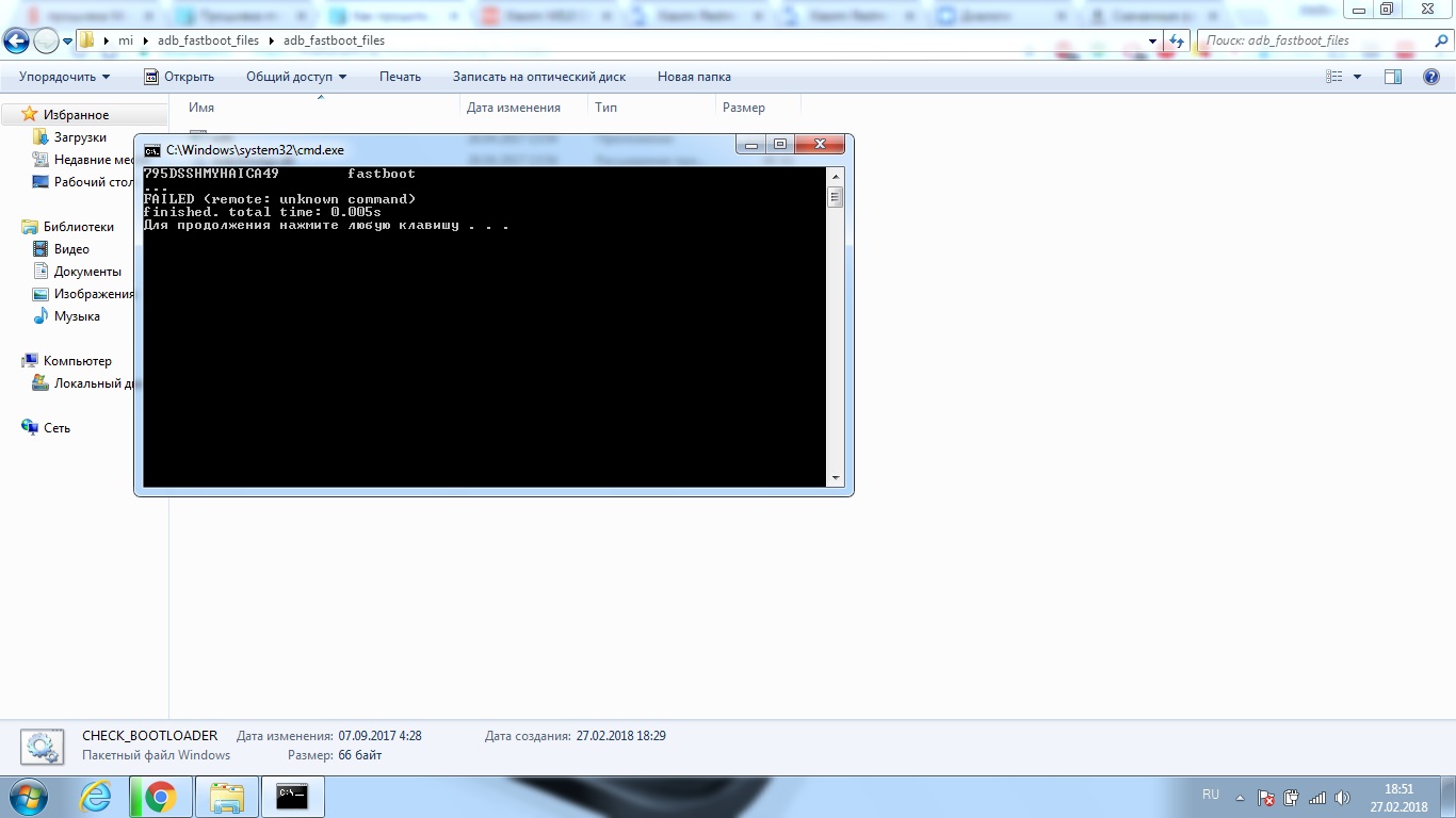 3. Запустить файл check_bootloader.bat. Посмотреть, что написано в "Device unlocked:"