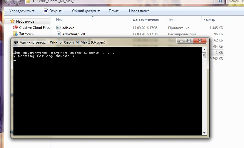 5. Запустить файл flashTWRP.bat и нажать enter, после чего прошьётся TWRP recovery и сразу запустится на телефоне.