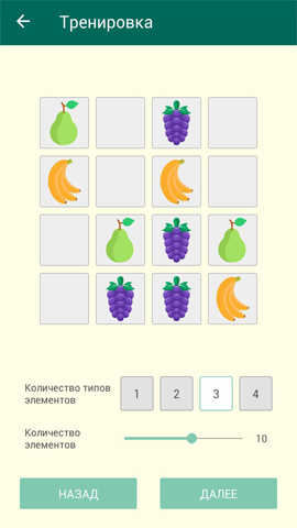 - Рейтинговая игра - здесь вы сможете проверить свою и память и развивать её соревнуясь с другими пользователями приложения.