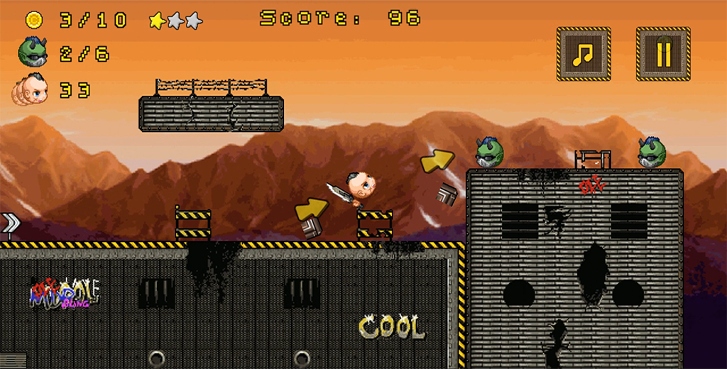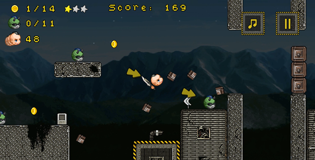 Игра "Бешеные головы" - это простой в исполнении (но не очень простой в плане геймплея) динамичный платформер со своеобразной системой управления, включающей функцию замедления времени. Задача игрока — управлять полетом главного героя, задавая направление. Чтобы перейти на следующий уровень, необходимо уничтожить всех злодеев и освободить подругу главного героя.