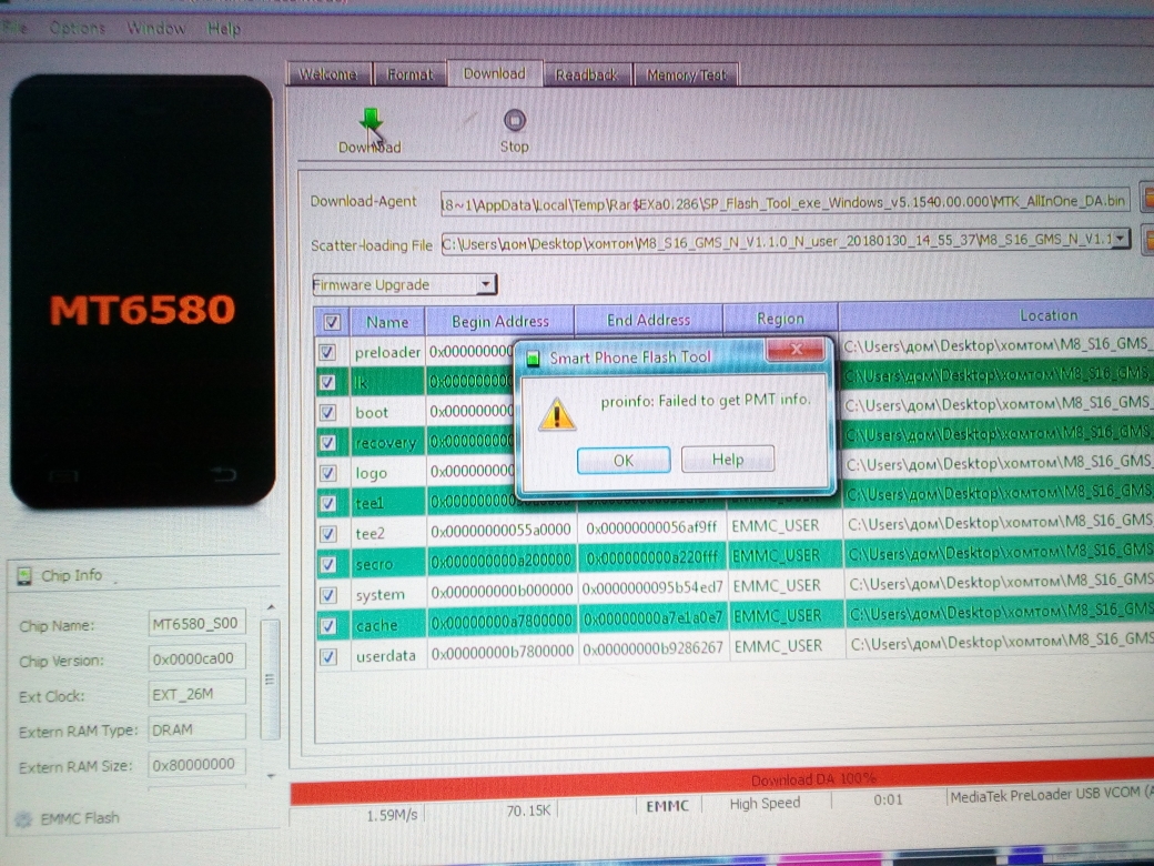 Все Привет!!! проблема с прошивкой телефона homtom s 16, с чего началось телефон зависал на заставке при старте, пробовал сделать сброс через рекавери сброс пошёл потом появился адройд с надписью нет команды и мигал так пролежал ночь не чего не изменилось вытащил батарейку, попытался запустить не запустился, зашёл рекавере на английском пропал остался на китайском нажимал сброс телефон перезагружался и все, решил прошить через флештул прошивка залилась без шибок в режиме download only, телефон перестал включаться не реагирует на зарядник, пробвал прошить в режиме firmware upgreid не дает, делал тест памяти нормально, пробовал разные прошивки не помогло, форматировал, потом прошивал сперва с галочкой на preloader, потом остальное не помогло, прошивал с батарейкой и без,во время прошивки ошибок не выдает, комп видит телафон как медиатек прелондер, может кто что подскажет что делать?
