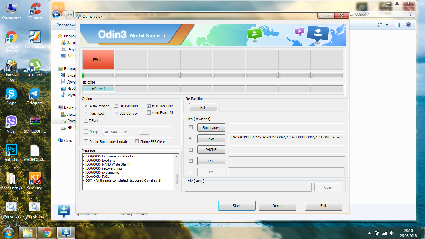 Ребята помогите апарат Samsung galaxy core prime очень лагал, решил перепрошить через odin стоковой прошивкой, все драйвера в норме, опознало нормально, но как ношла прошивка сразу выдало FAIL! и на телефоне пишет