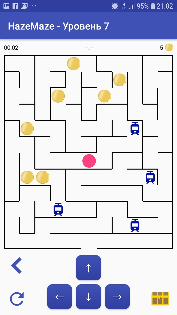 Прохождение каждой карты открывает следующий уровень (карту большего размера). Количество уровней ограничено только разрешением вашего устройства. Все карты генерируются случайным образом. Вы можете сгенерировать новую карту, нажав кнопку обновления.