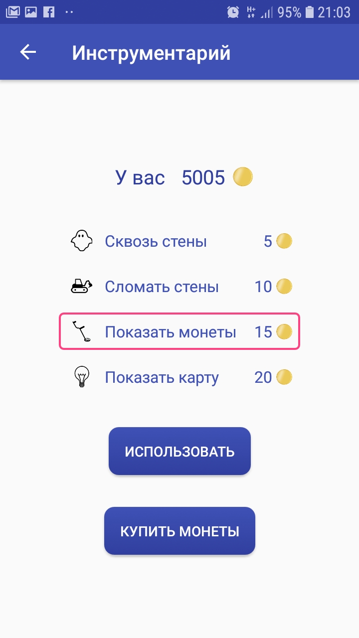 - детектор монет (показывает оставшиеся монеты на карте);