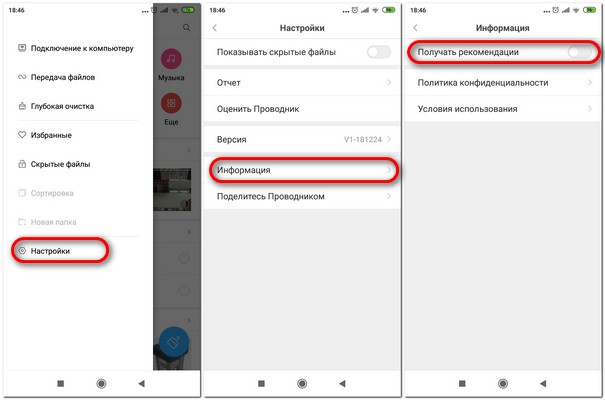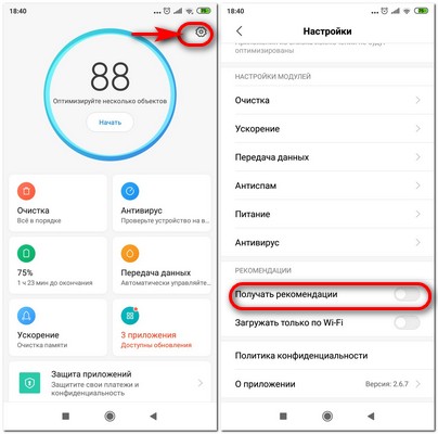 1. Отключил получение рекомендаций в приложениях: "Браузер", "Безопасность", "Очистка", "Проводник", "Загрузки" и "Музыка".