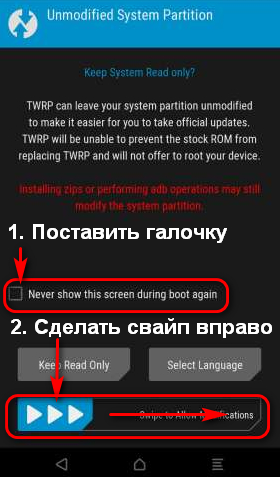 4. Разрешаем модифицировать system передвинув ползунок внизу экрана. (swipe to allow modifications)