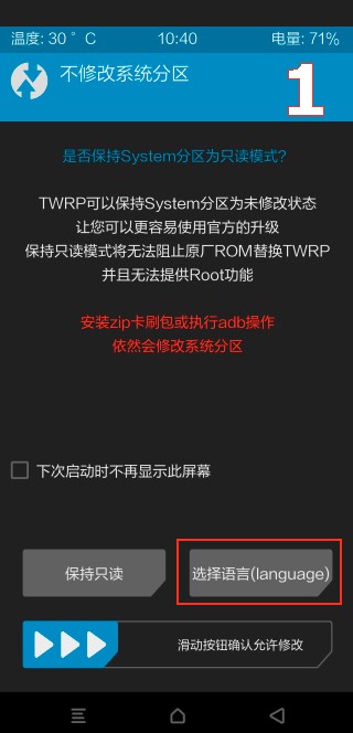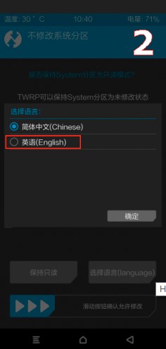 4. По дефолту TWRP на китайском. Сменить язык на английский.