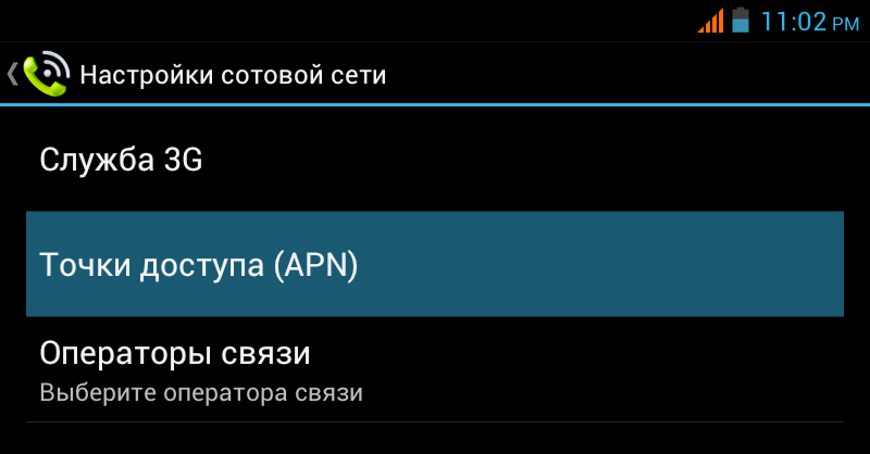 2. Теперь выберите "Точки доступа (APN)".