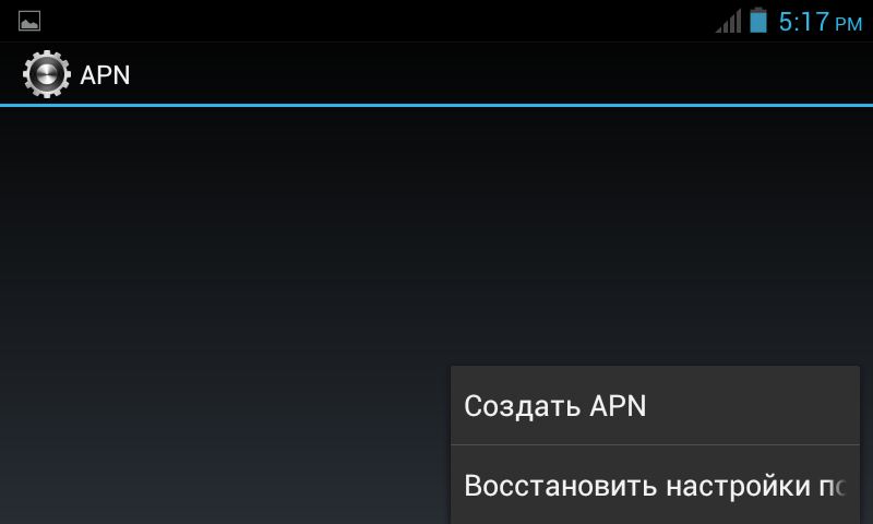 "Функции" (под экраном телефона) и выберите пункт "Создать APN" ("Новая точка доступа").