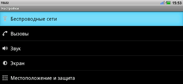 1. Выберите "Настройки" ---> "Беспроводные сети".
