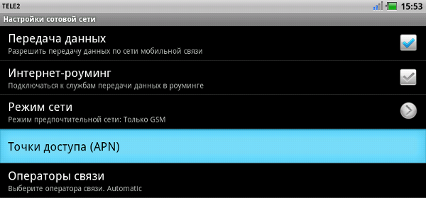 Настройка интернета Теле2 на Андроид 4.0.3.
