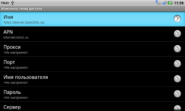 Настройка интернета Теле2 на Андроид 2.3.