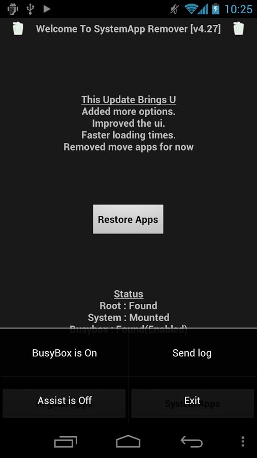 Позволяет не только удалять установленные приложения, но и системный софт из прошивки Android. Кроме того перед удалением какого либо системного приложения всегда есть возможность сохранить копию и она будет всегда доступна для быстрого восстановления.