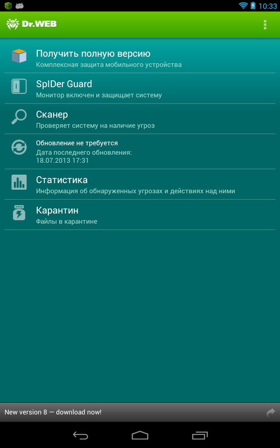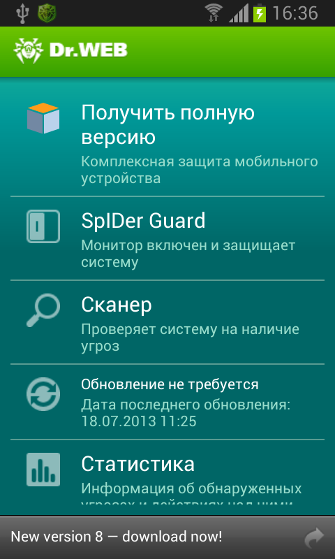 Защита вашего телефончика - Антивирус, Антивор, Антиспам в одном продукте. Антивирус Dr.Web обеспечит вас и ваше мобильное устройство постоянной антивирусной защитой, фильтрацией звонков и СМС, а также инструментами для поиска устройства в случае его утери и противодействия ворам в случае кражи.
