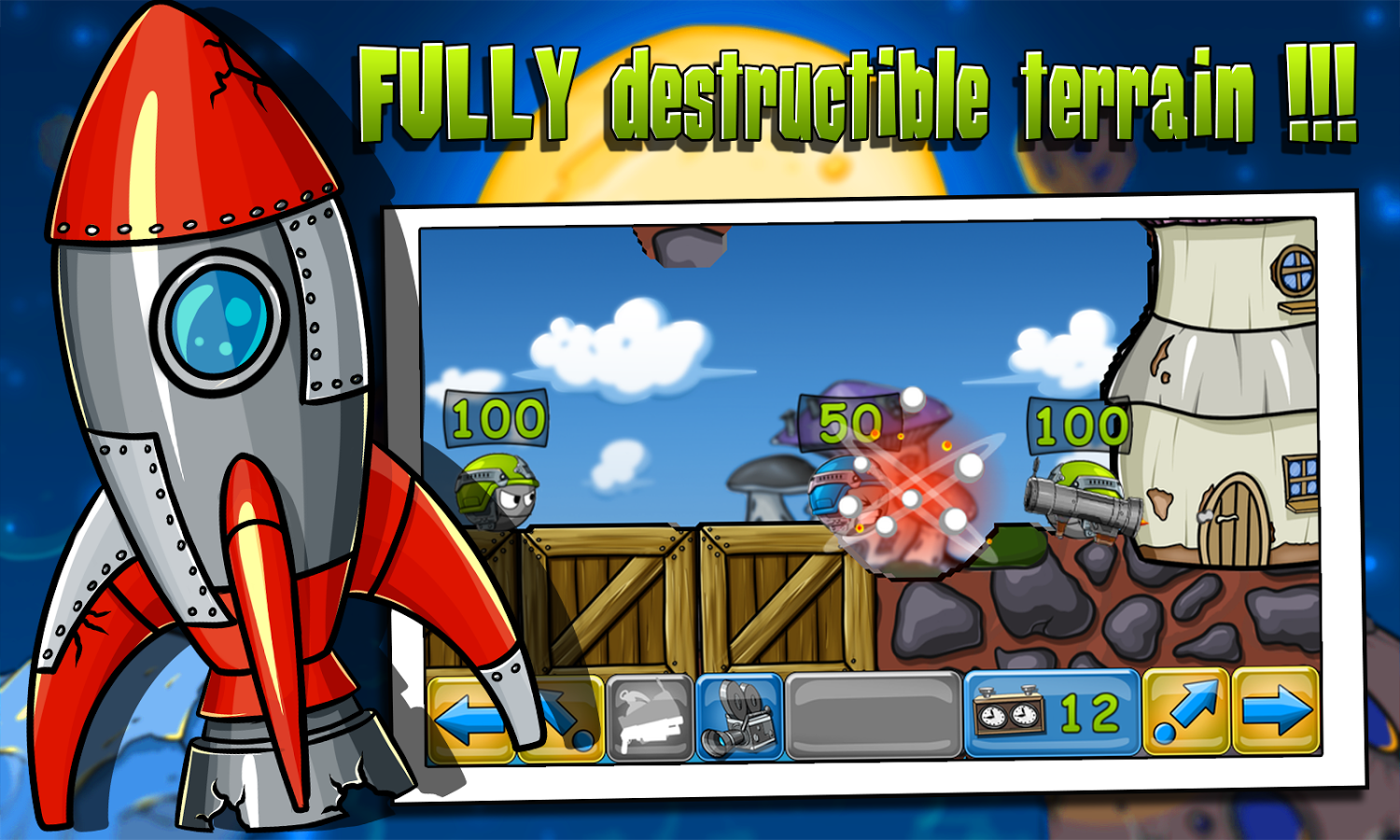 Warlings: Battle Worms - аркадная игра для Вашего устройства, которая предлагает поучаствовать в сражениях и боях с применением огромного количества оружия, в том числе и гранатомётов. Реализована система бонусов и апгрейдов. А еще игру делает привлекательной возможность сразиться со своими друзьями по Bluetooth. Покажите, кто главный всем Вашим знакомым.