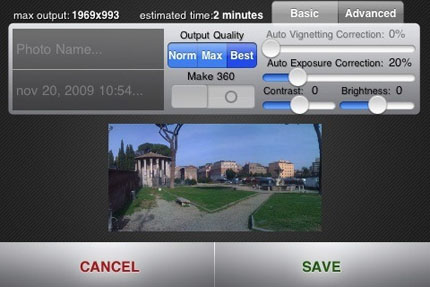 Panoramatic 360 позволяет Вам создавать панорамные фотографии с iPhone фотокамерой или из фотографий в Альбоме Фотографий (таким образом вы можете использовать приложение и с iPod). Панорамная фотография строится с высокой разрешающей способностью изображения и сохраняется во внутренний альбом, чтобы поддержать реальный размер. В новой версии исправлены ошибки, добавлена загрузка на Facebook и многозадачность.