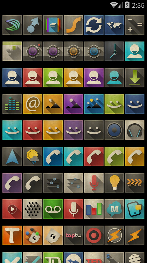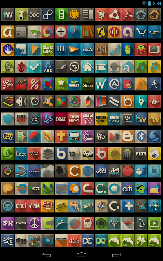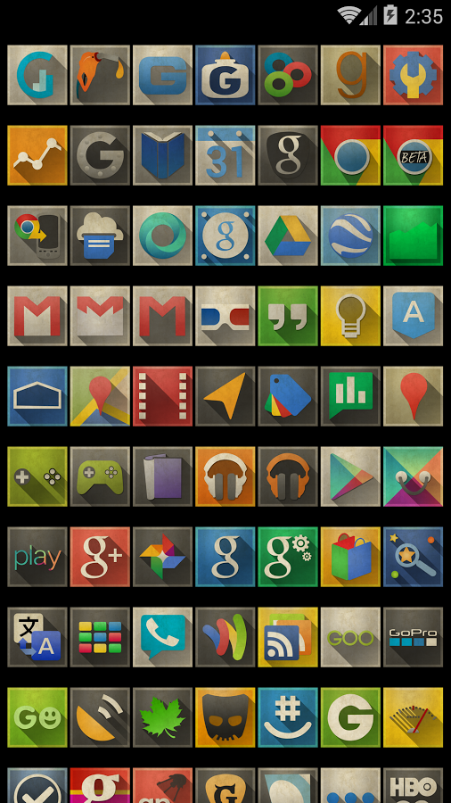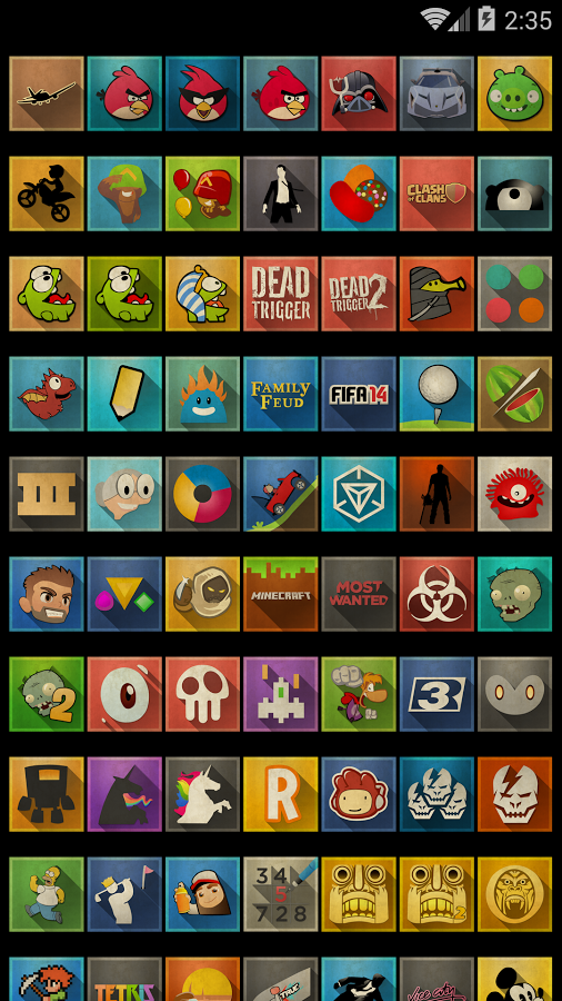 Огромный пак стильных прямоугольных иконок. Каждая иконка была сделана в ручную автором и поэтому имеет высокий уровень детализации. Все иконки имеют Full HD 144x144 разрешение. Для того чтобы применить иконки вам понадобится один из нижеуказанных лаунчеров.