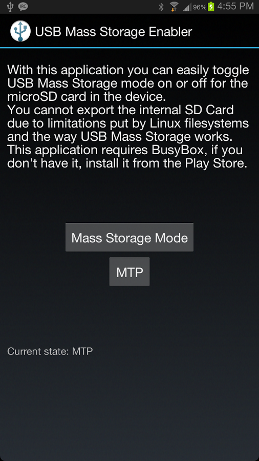 SG USB Mass Storage Enabler - приложение для активации режима накопителя для смартфонов Sony и Samsung.