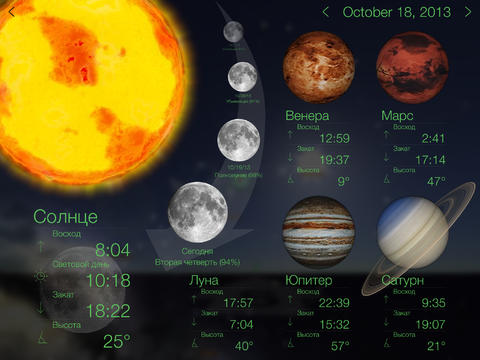 Star Walk поможет вам узнать все о звездах одним взмахом руки. Достаточно поднять iPhone или iPod Touch* к небу, и вы увидите на экране названия звезд и планет, что вас окружают, не важно, день сейчас или ночь. Вы многое узнаете о созвездиях, туманностях и метеоритных дождях, которые раньше были доступны человеческому взгляду только с помощью телескопа в безлунную ночь вдалеке от города.