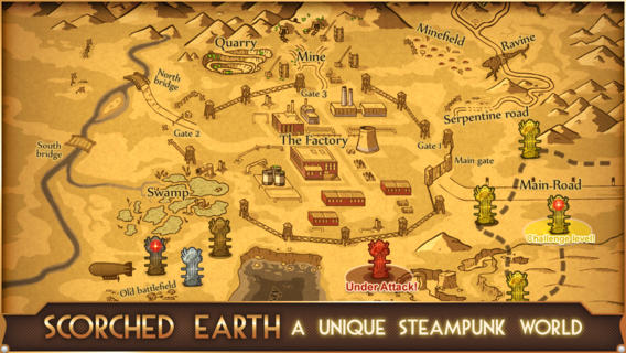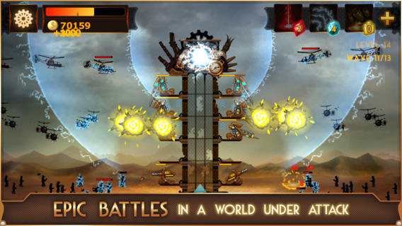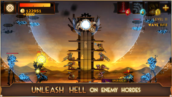 Отстраивайте свою башню при помощи пулемётов, артиллерийских орудий, катушек теслы и даже пиломётов, чтобы противостоять Имперской Армии, которая бросает в бой свои лучшие отряды пехоты и механических монстров.