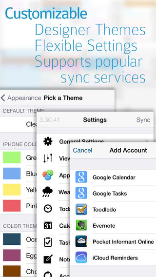 8. Синхронизация по воздуху с Google и Toodledo.