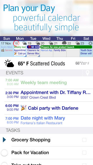 Будьте ниндзей в организации своего времени. Разрабатывая более чем 10 последних лет мобильный календарь, мы сосредоточились на лучшем опыте для продвинутых пользователей а также тех, кому нужно просто немного больше, чем дают встроенные приложения - календарь, задачи, заметки и контакты.