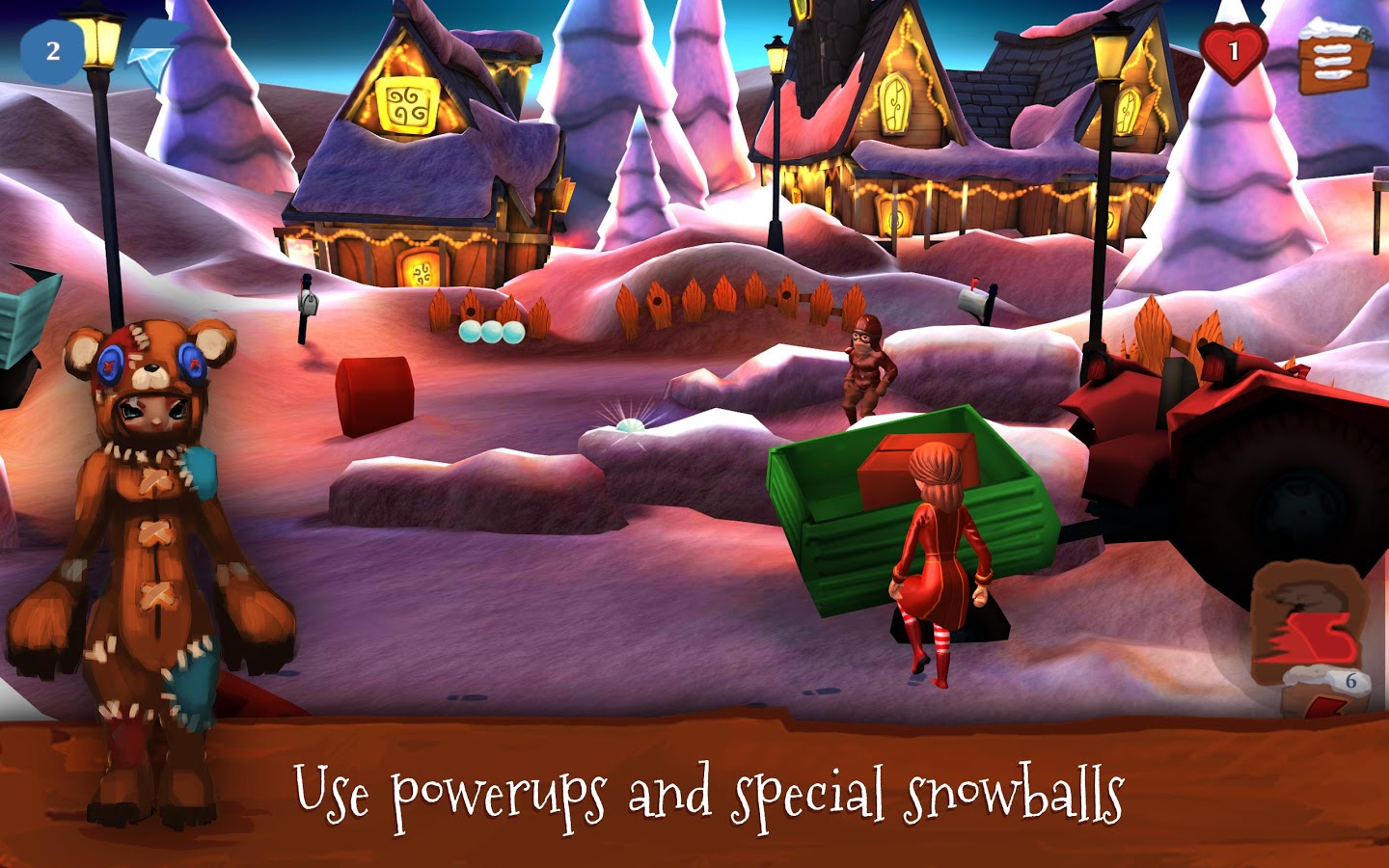 Snowdown Winter Edition 3D - отличная аркадная игра для андроид, которая предлагает устроить Вам настоящие командные баталии в снежки. Реализованный мультиплеер позволит Вам пригласить в игру своих друзей, взять их в команду либо сразиться против них, доказав всем, кто на самом деле чемпион! Различные игровые бонусы, возможность выделить своего персонажа различными элементами, отличная графика и невероятный драйв! Вы не останетесь равнодушными!