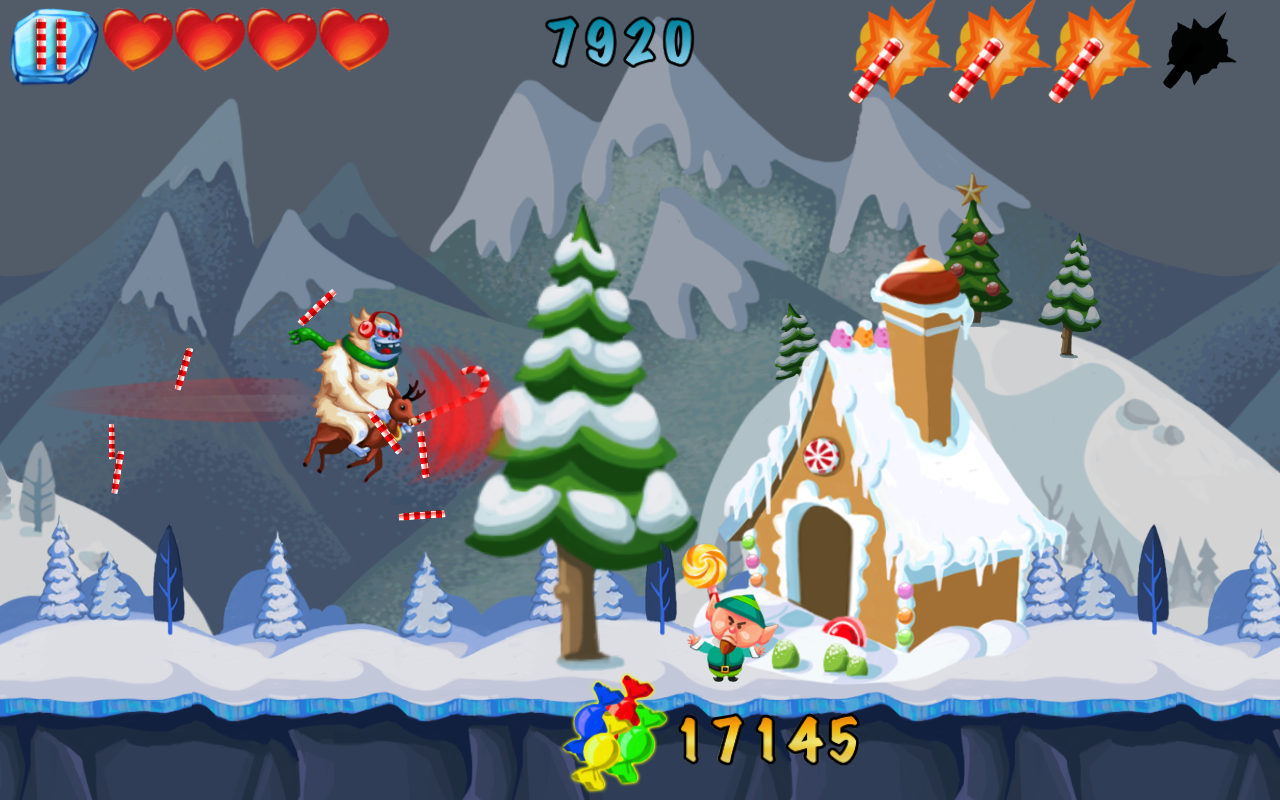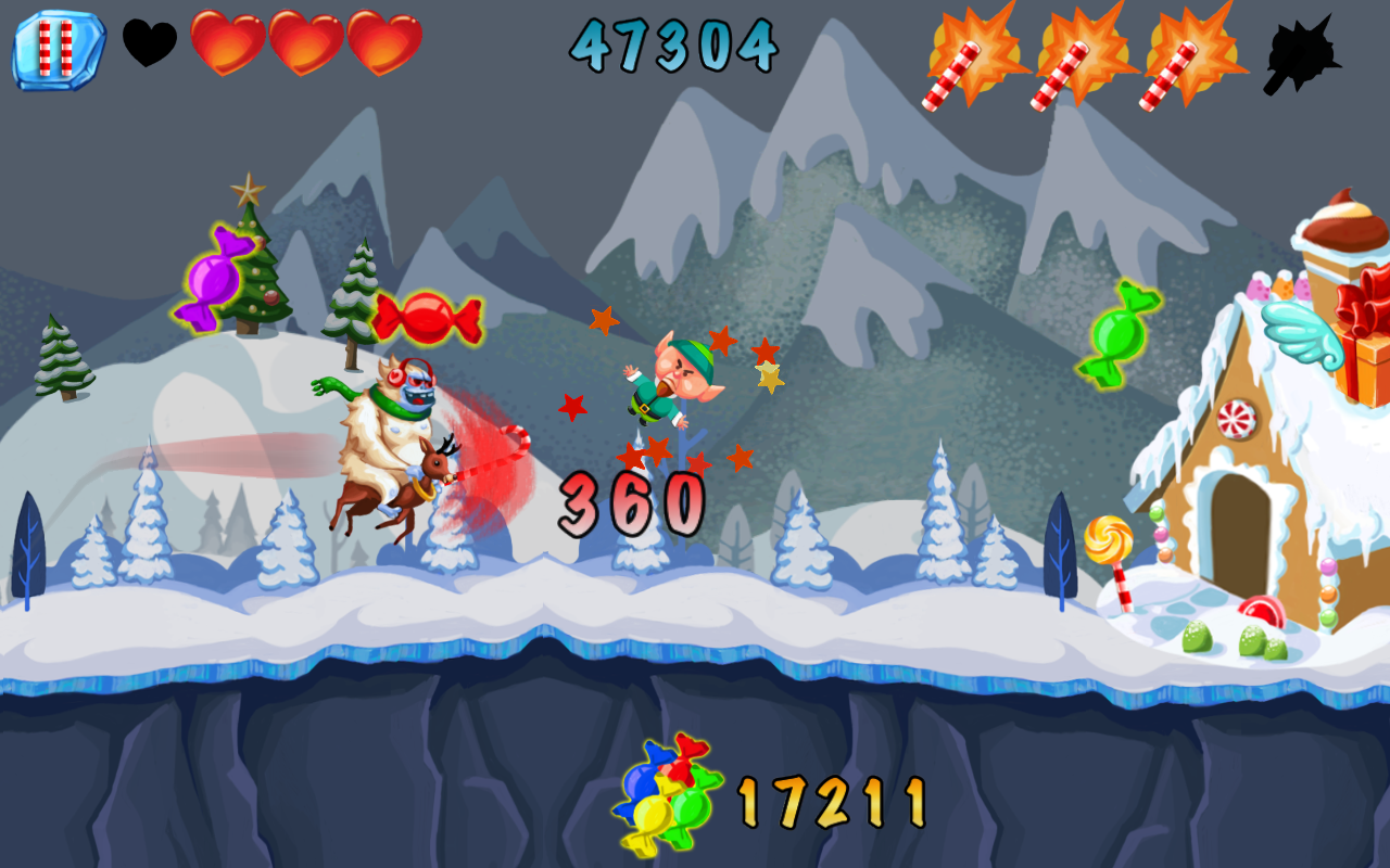 Elf Punt - красивая игра в жанре Раннер, в которой Вам предстоит сыграть за Yeti, и помочь собрать ему конфетки, ведь без них он чувствует себя ослабленным. Делать это вы будете верхом на олене. Гоняйтесь за эльфами и собирайте сладости на своём пути, избегая препятствия и делая головокружительные прыжки. Покупайте улучшения, чтобы облегчить себе прохождение игры.