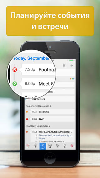 Любые события или задачи, созданные в приложении, будут автоматически синхронизированы между iPhone и iPad. Скажите нет запискам и забытым блокнотам!