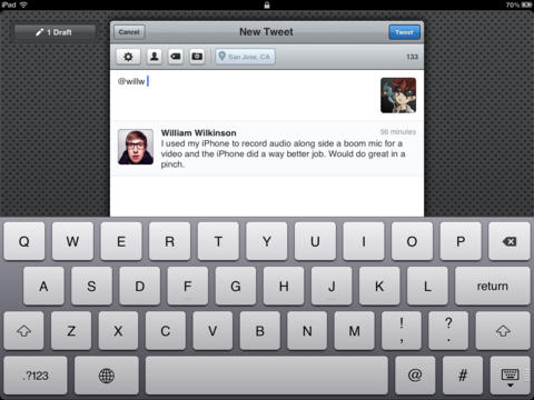 Tweetbot - это полнофункциональный twitter клиент для iPad с множеством возможностей. Он включает и тщательно продуманный интерфейс, звуки, анимацию и несколько особых функций, например ленты и множество жестов.