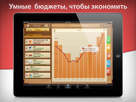 - Составление бюджетов по категориям за периоды