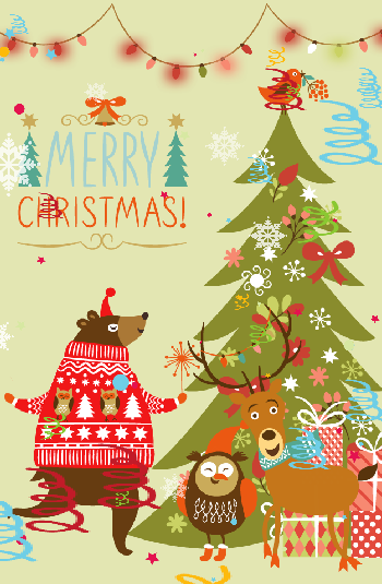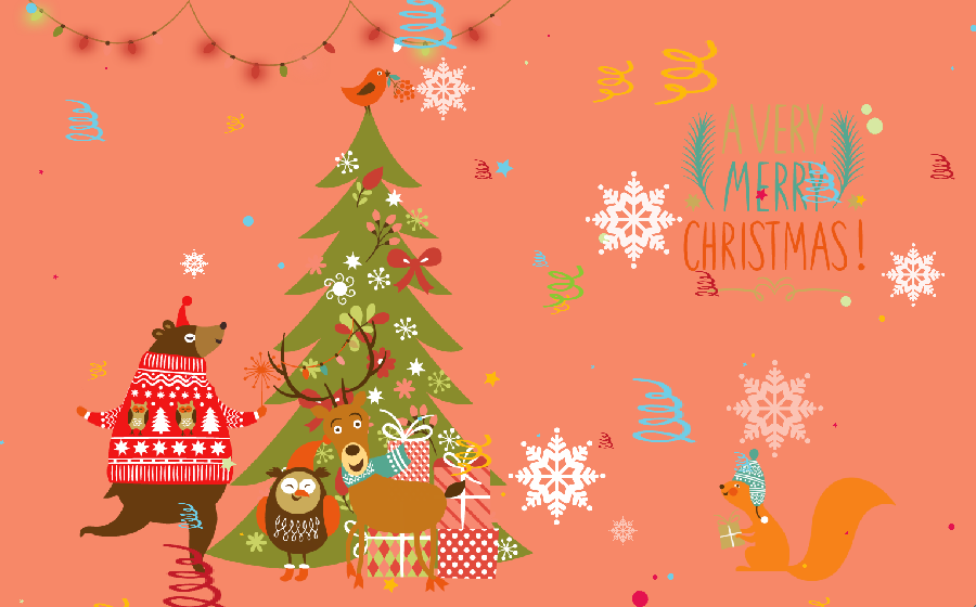 Танцующие персонажи - медведь, сова, белочка, олень, птичка; дождь из конфетти, падающие снежинки превращаются в единый Рождественский танец! Мы желаем Вам веселого Рождества и счастливого Нового Года!