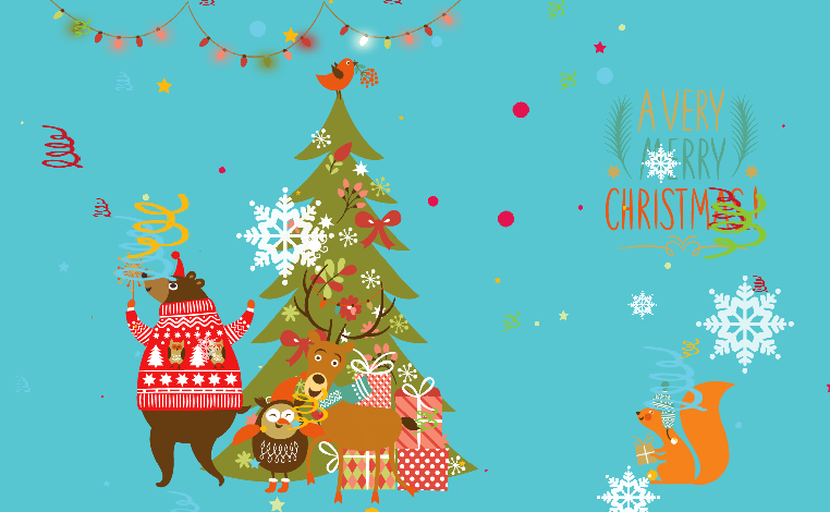 - 3 типа рождественских песен проигрываются при нажатии на подарки, птичку на елке, белку и поздравления