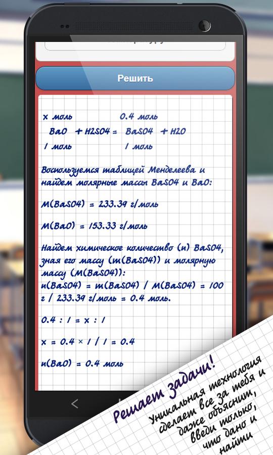 Приложение может решить химические задачи любой сложности за тебя (даже задачи по уравнению реакции), а еще и объяснить свое решение. Тебе остается только ввести, что дано и что найти.