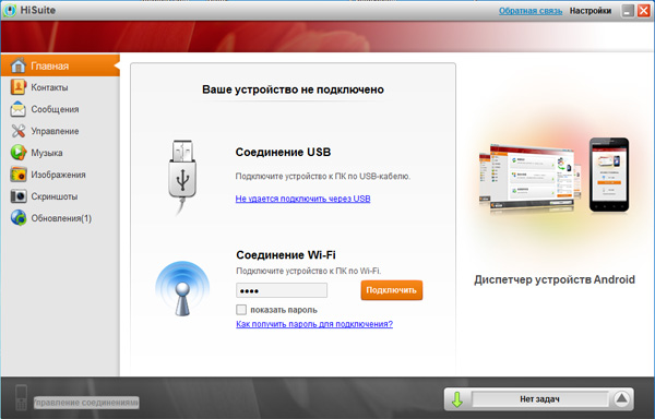 HiSuite - утилита от компании Huawei, предназначенная для синхронизации устройств Huawei с ПК на ОС Windows.