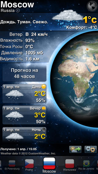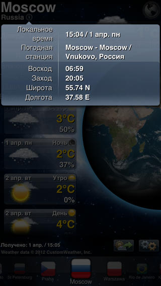 Вся информация о текущей погоде и прогноз на ближайшие дни теперь у Вас в руках, в Вашем iPhone, в самом удобном и простом виде.