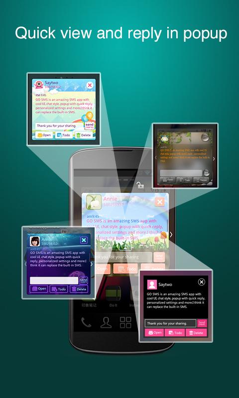 - Полная поддержка SMS/MMS, а также чата в Facebook с плагином GO FB-чат