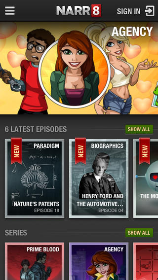 NARR8 — это не просто платформа электронных книг. Все сериалы NARR8 наполнены анимацией, HD-спецэффектами и интерактивными элементами, которые позволяют взаимодействовать с происходящим на экране. NARR8 предлагает самые разные жанры: от комиксов о приключениях супергероев, научной фантастики и ужасов — до выпусков научно-популярной и исторической тематики.