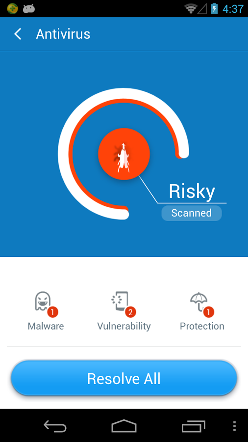 Антивирусное приложение предназначено для защиты вашего смартфона от новых вирусов, вредоносных программ, уязвимостей системы и утечек конфиденциальных данных.