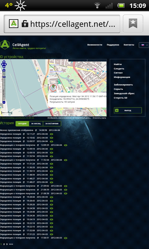 <pin 4 digits> gps (on|off) [gps может включиться на на Android версии ниже < 3