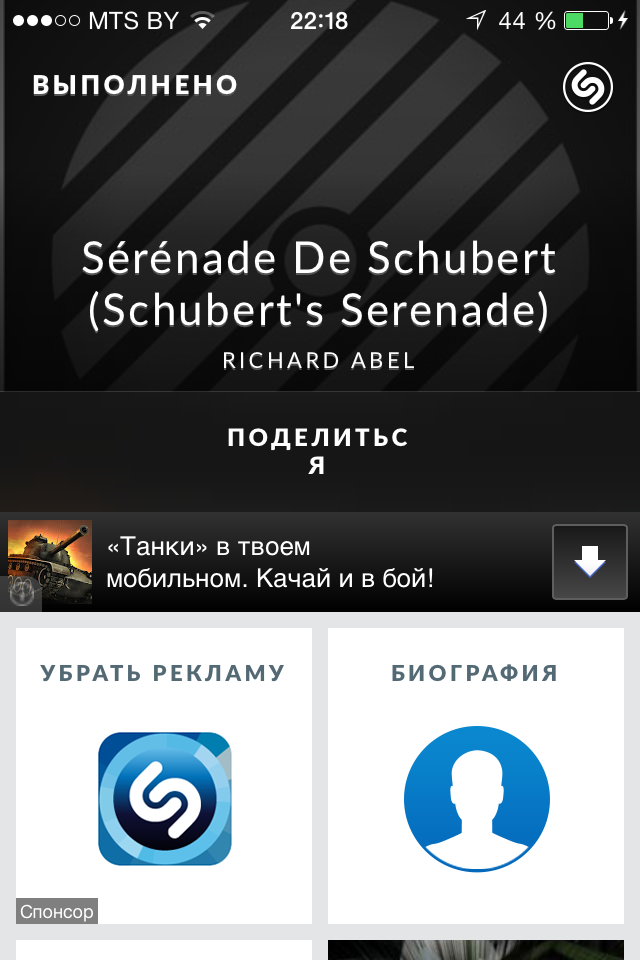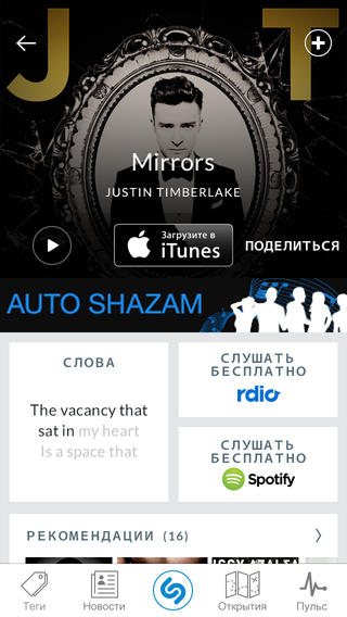 ○ Поделиться тегами с друзьями по Shazam