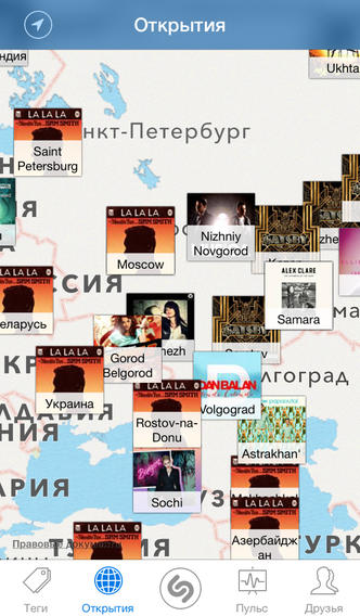 ○ Узнать, какие композиции пользуются популярностью в мире, используя Интерактивные карты Shazam