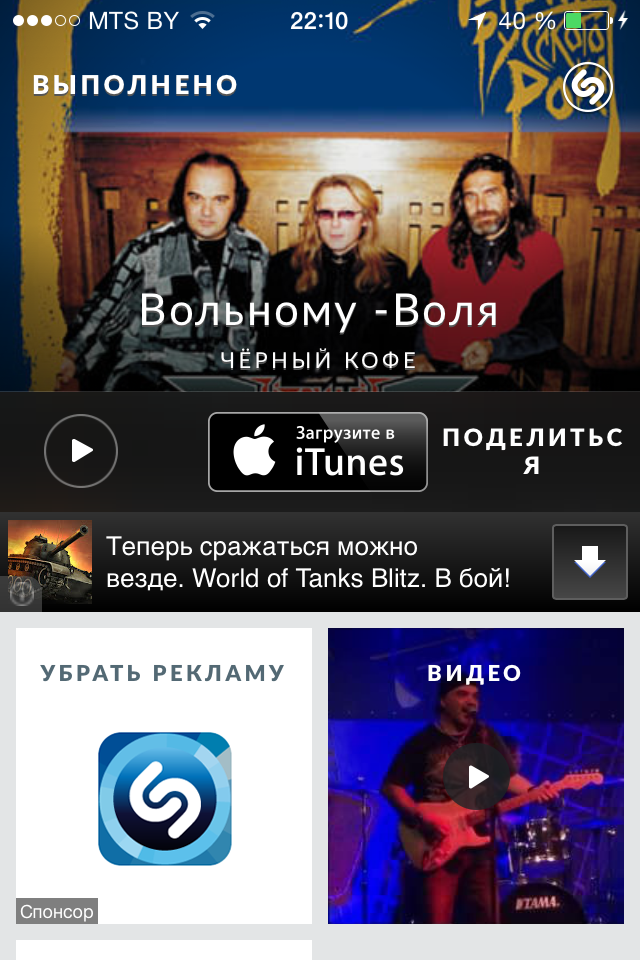 ○ Shazam работает, даже если у вас нет подключения к Интернету; Shazam распознает песню, как только возобновится подключение.