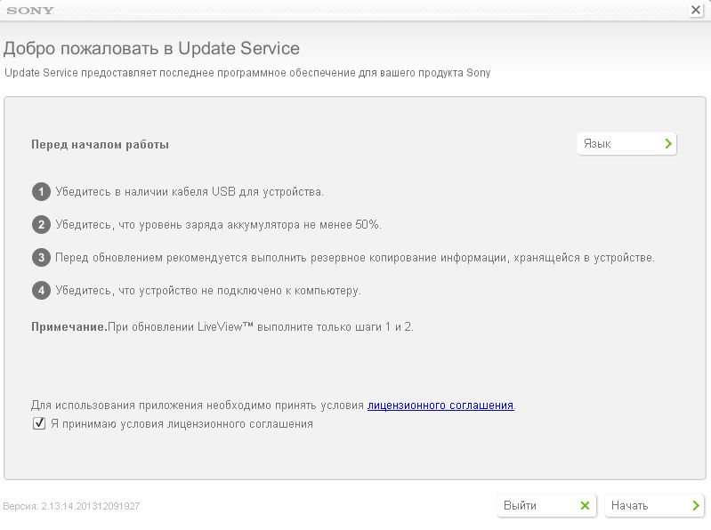 Sony Update Service - утилита, предназначенная для прошивки телефонов Sony с компьютера.
