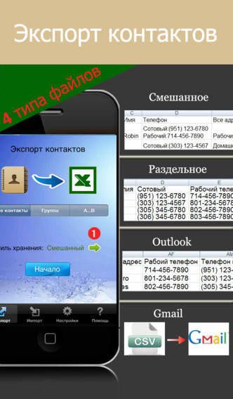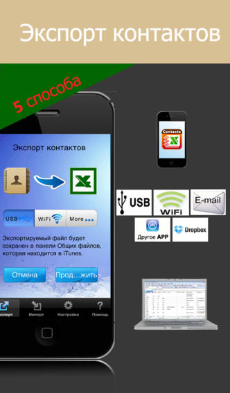 ExcelContacts - это не только лучший, но на данный момент единственно возможный способ переноса ваших контактов с вашего iPhone или на него, при чем без помощи iTunes! Ни одно приложение не позволит так просто управлять контактами вашего iPhone: