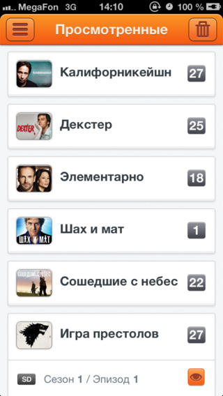 Число на иконке приложения будет Вам напоминать о том, что надо скачать новые серии. Посмотрели серию? Сообщите об этом приложению, и сообщение о вышедшей серии больше не будет отображаться!