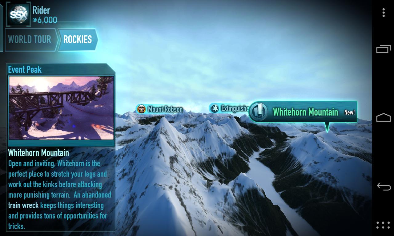 SSX- один из самых популярных симуляторов сноубординга, который берет своё начало еще на PlayStation 2 в 2000 году. А теперь доступен и на Ваших андроид-устройтсвах. Попробуйте свои силы в этом зимнем виде спорта и промчитесь на полной скорости с крутого спуска.