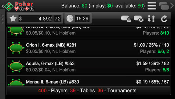 Прекрасная графика, удобный интерфейс и высокое быстродействие будут радовать вас каждый раз, как вы пользуетесь мобильной версией Poker MIRA. Мы обеспечили ее широким спектром функций и настроек. Вот почему и кеш игры и многостоловые турниры играются так легко и увлекательно.
